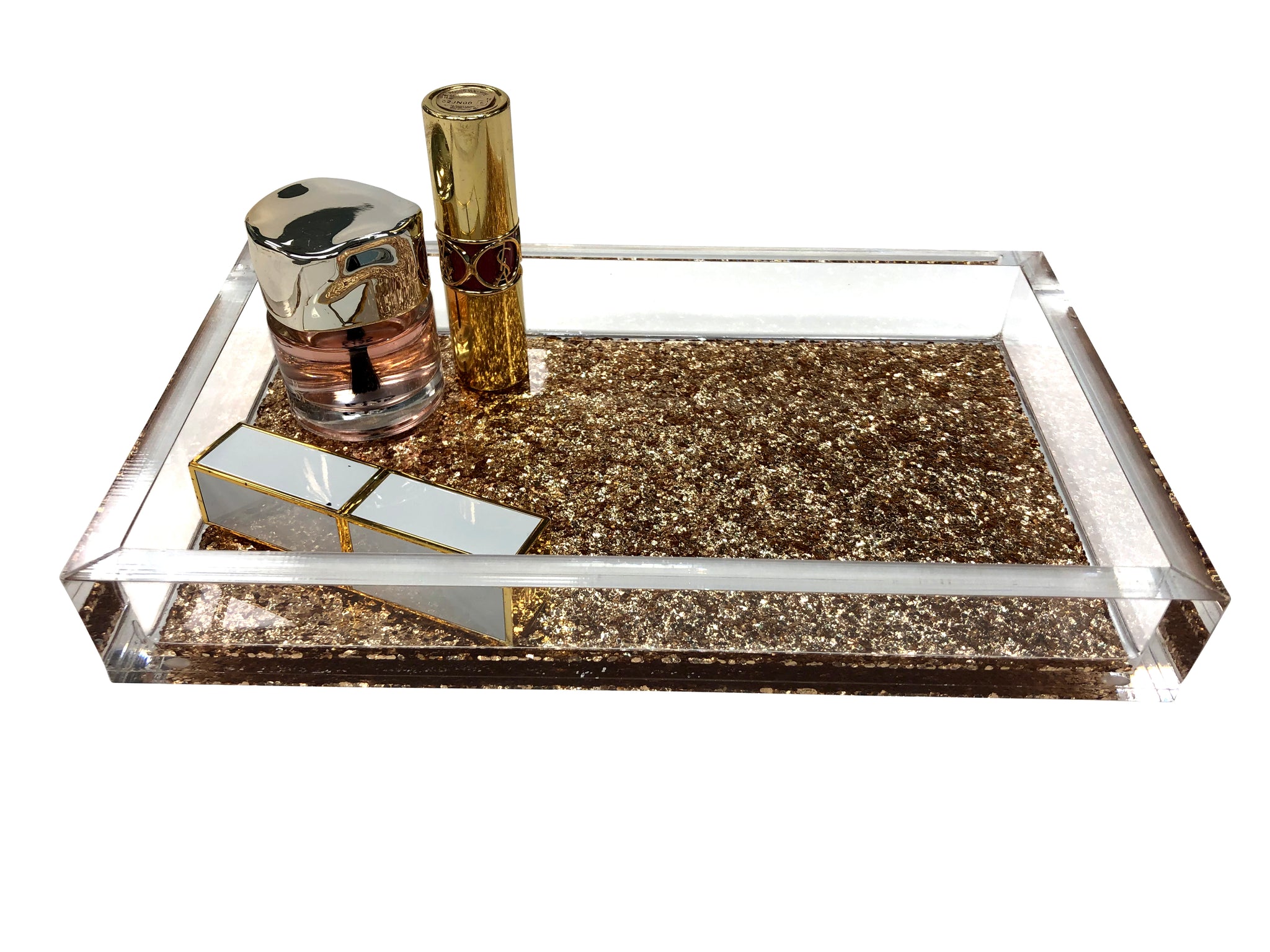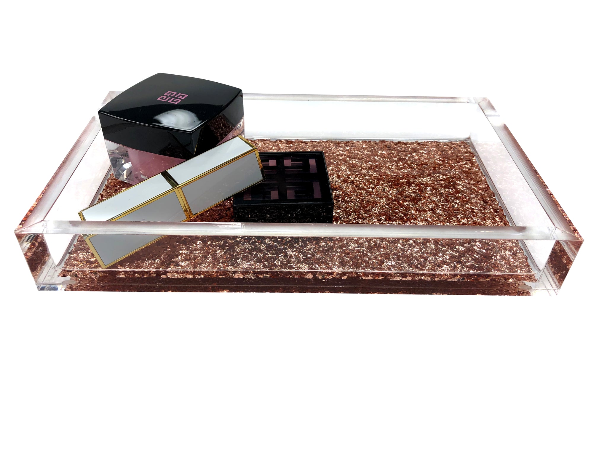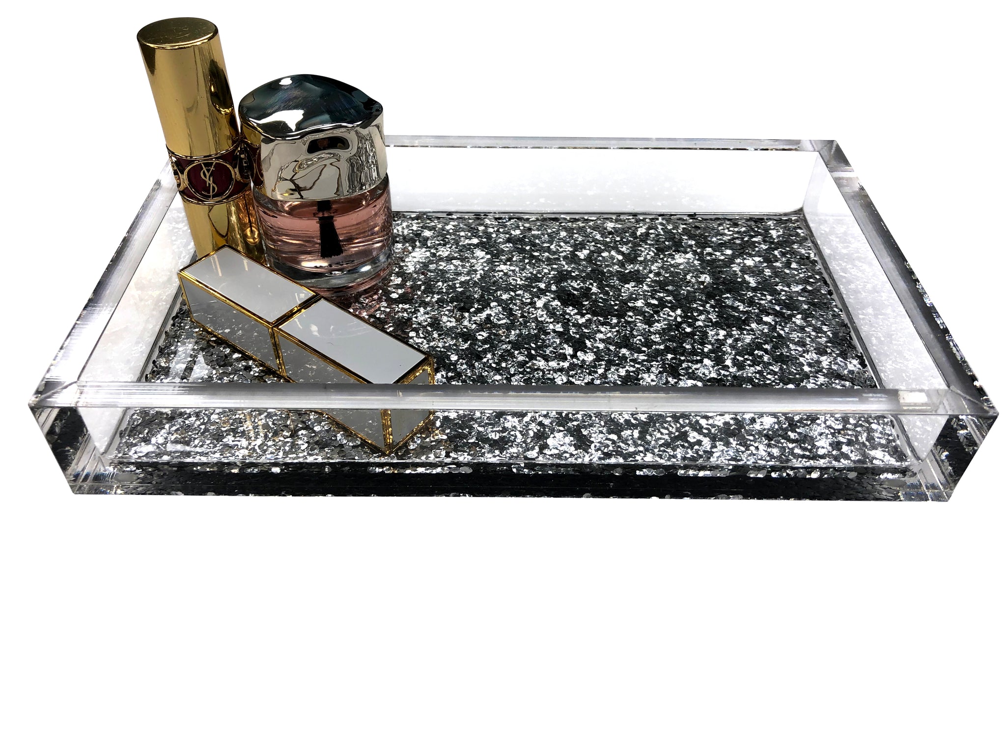 A high quality acrylic tray with a coating of our genuine metals. The tray is made from 9mm thick acrylic with diamond polished edges. It is filled with a resin coating of our unique flakes made from real metals. Available in copper, brass and aluminum.