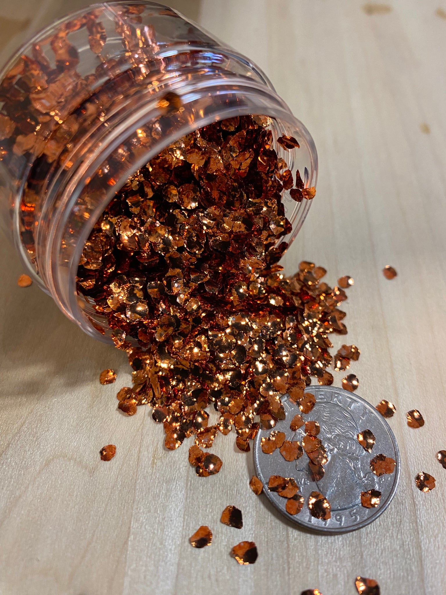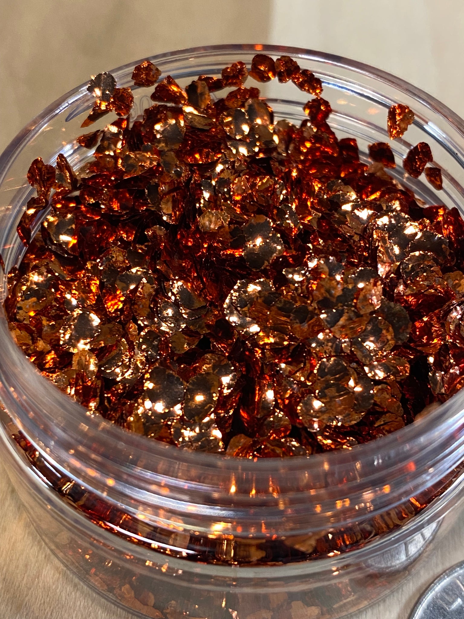 Our biggest copper flakes are given a heat treatment and transform into a beautiful shade of amber.