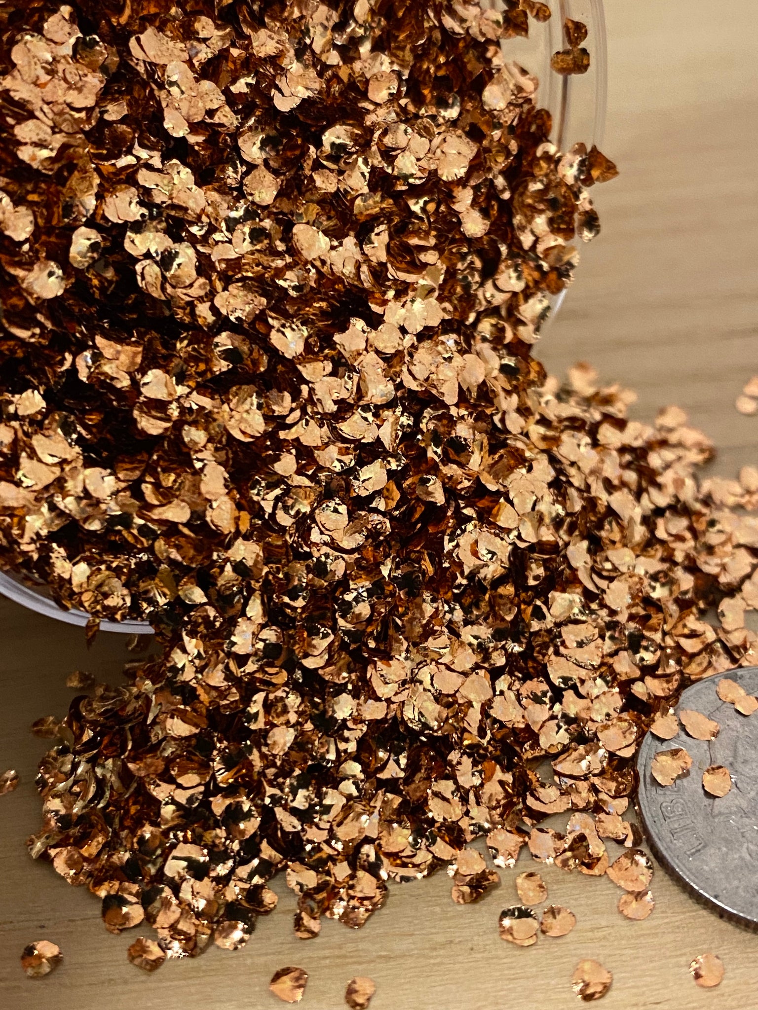 These genuine gold bronze metal flakes have a slight curl to them, giving them a three dimensional appearance. When embedded in resin they reflect light in all different angles.